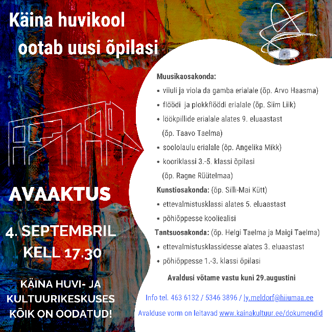 Avalduste vastuvõtt Käina huvikooli