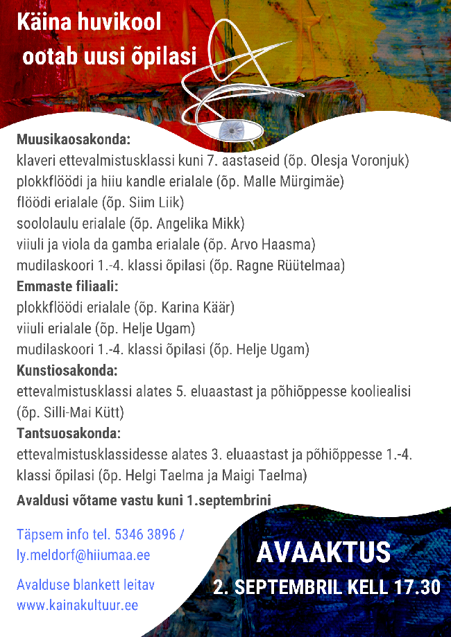 Avalduste vastuvõtt Käina huvikooli